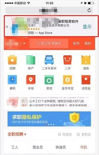 负面案例:页面顶部出现带APP引导内容的的悬浮广告